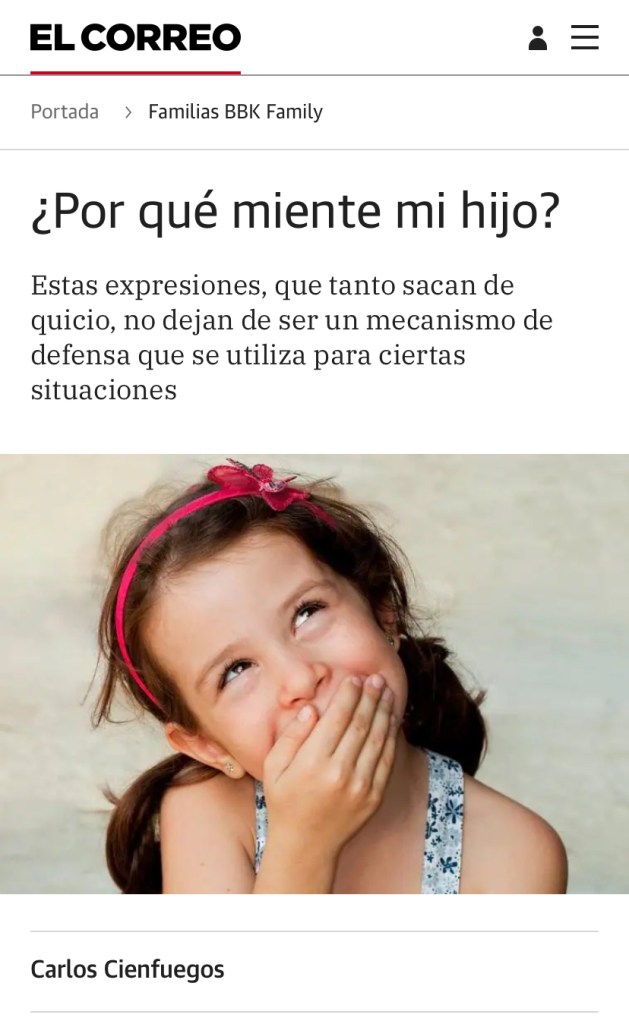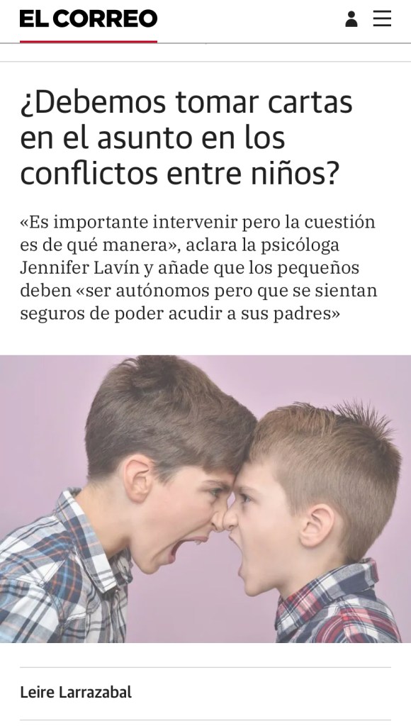 Jennifer Lavín en los Medios de Comunicación Se trata de una pequeña aportación para Computer Hoy sobre adolescentes y jóvenes, y móviles. En esta entrevista para El Correo, hablo sobre si es necesario intervenir en los conflictos entre niños, y de qué manera hacerlo. Esta entrevista realizada para el periódico El Correo, trata sobre si los padres tienen o no un hijo favorito y cómo eso puede afectar a los hijos. Entrevista realizada para el periódico El Correo, en la que hablo sobre las mentiras en los niños y cómo los padres pueden gestiornalo.